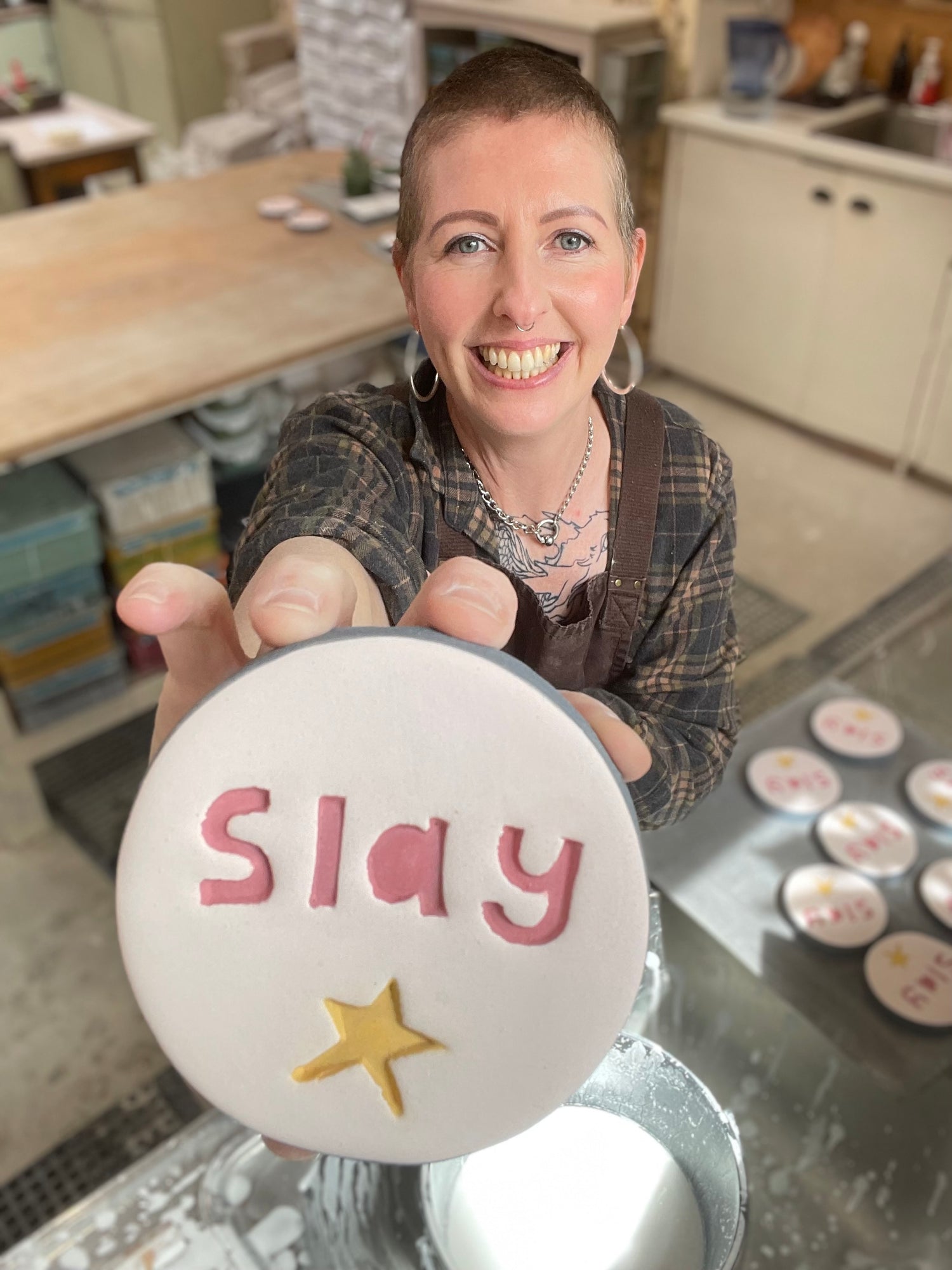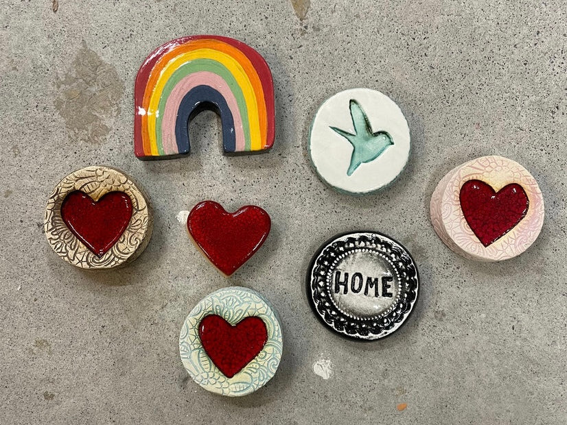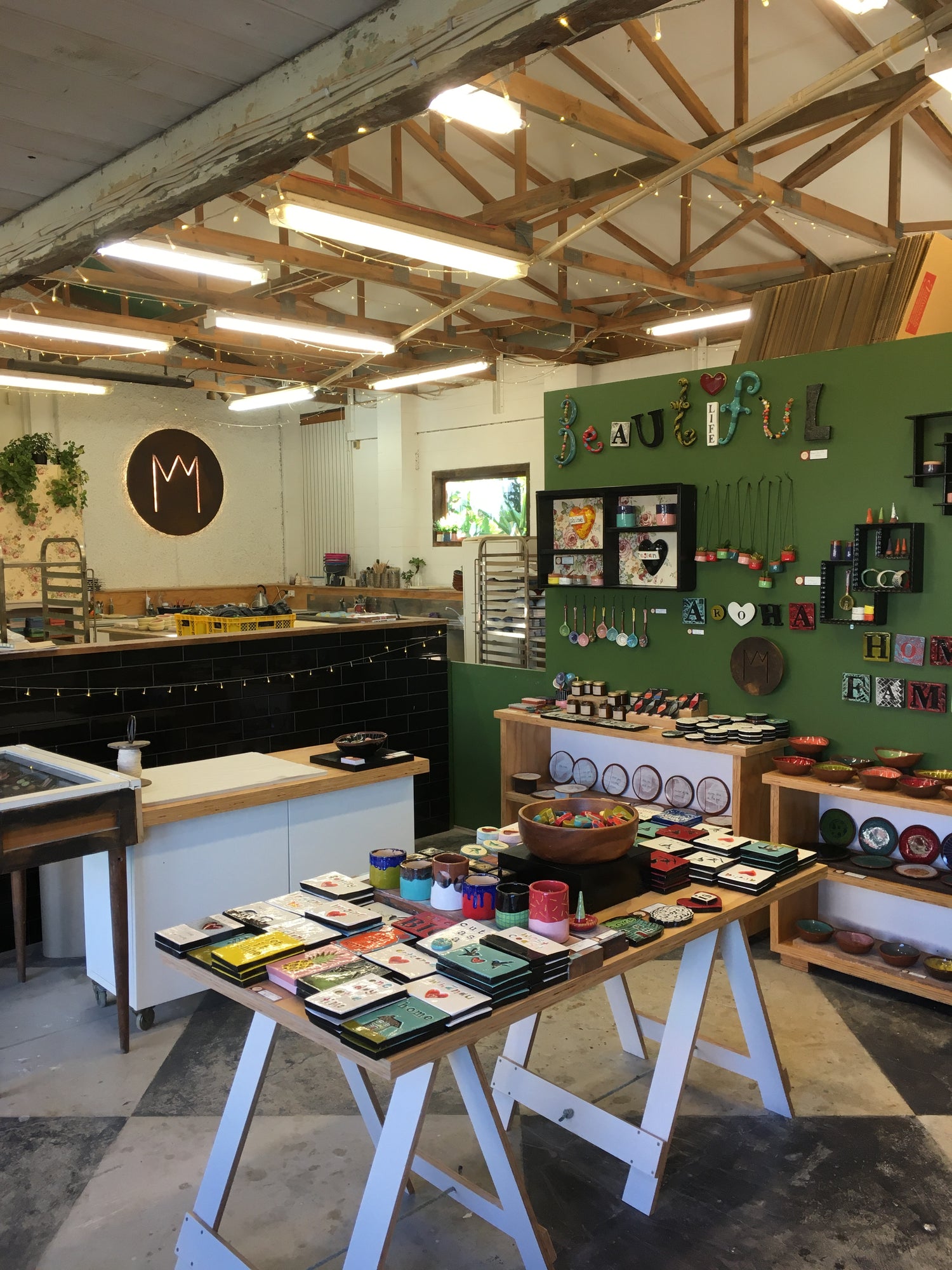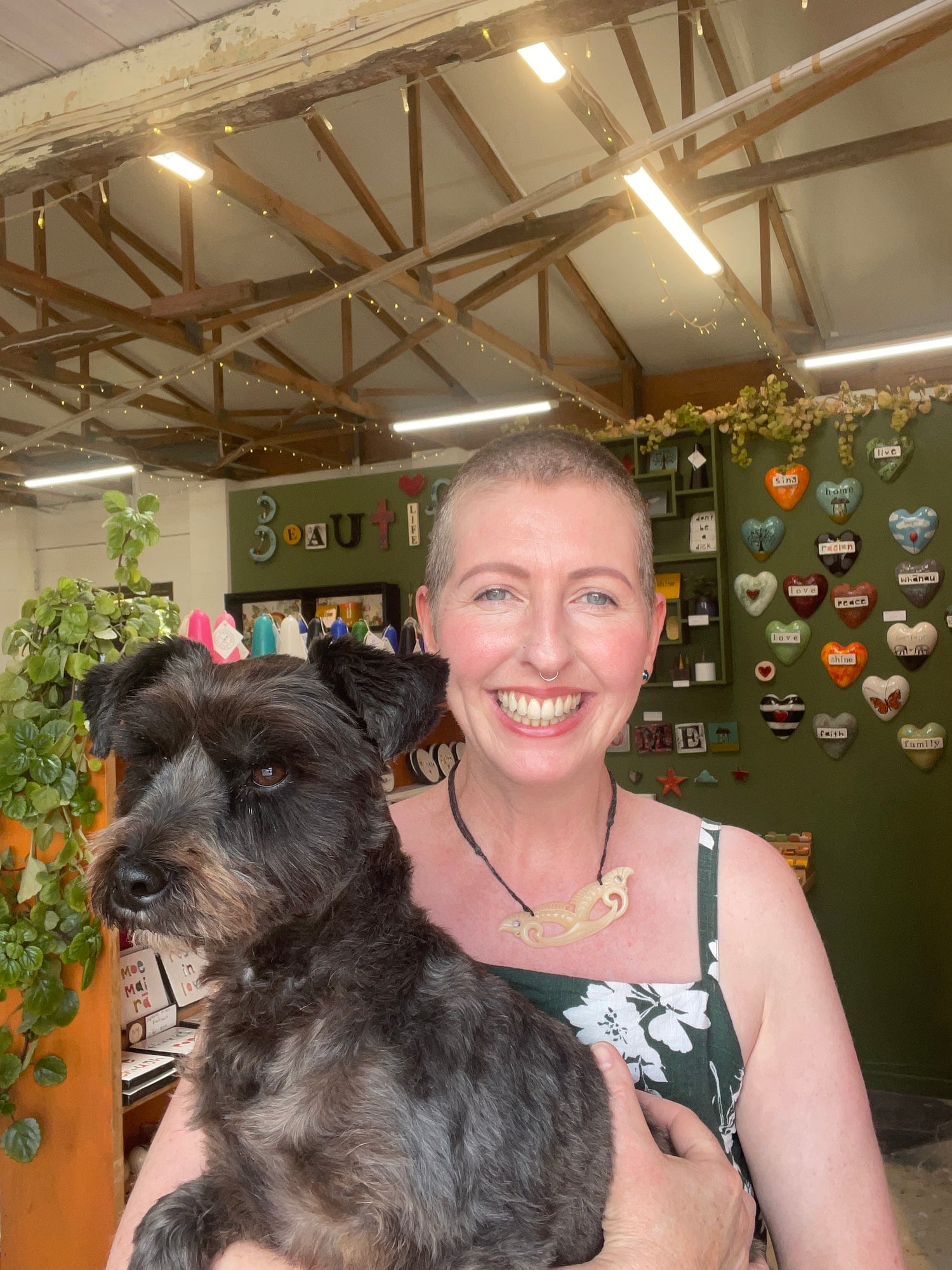 The Monster Company is a vibrant ceramic studio and gallery in Raglan's historic dairy factory. For over 13 years, I've created handcrafted ceramic pieces bringing joy to homes throughout Aotearoa, with my signature tiles and hearts becoming beloved fixtures in galleries nationwide. My artistic journey began with a Bachelor of Media Arts in Sculpture, completed in 2000, before making Raglan my home 23 years ago. My creative journey has been lovingly supported by my family including my adult twin boys who now live in Australia but continue to inspire my work, and my faithful pets, Mary and Pedro. When I'm not in my studio, you'll find me in my garden, hanging out with my friends, attending music gigs and eating all the delicious food.