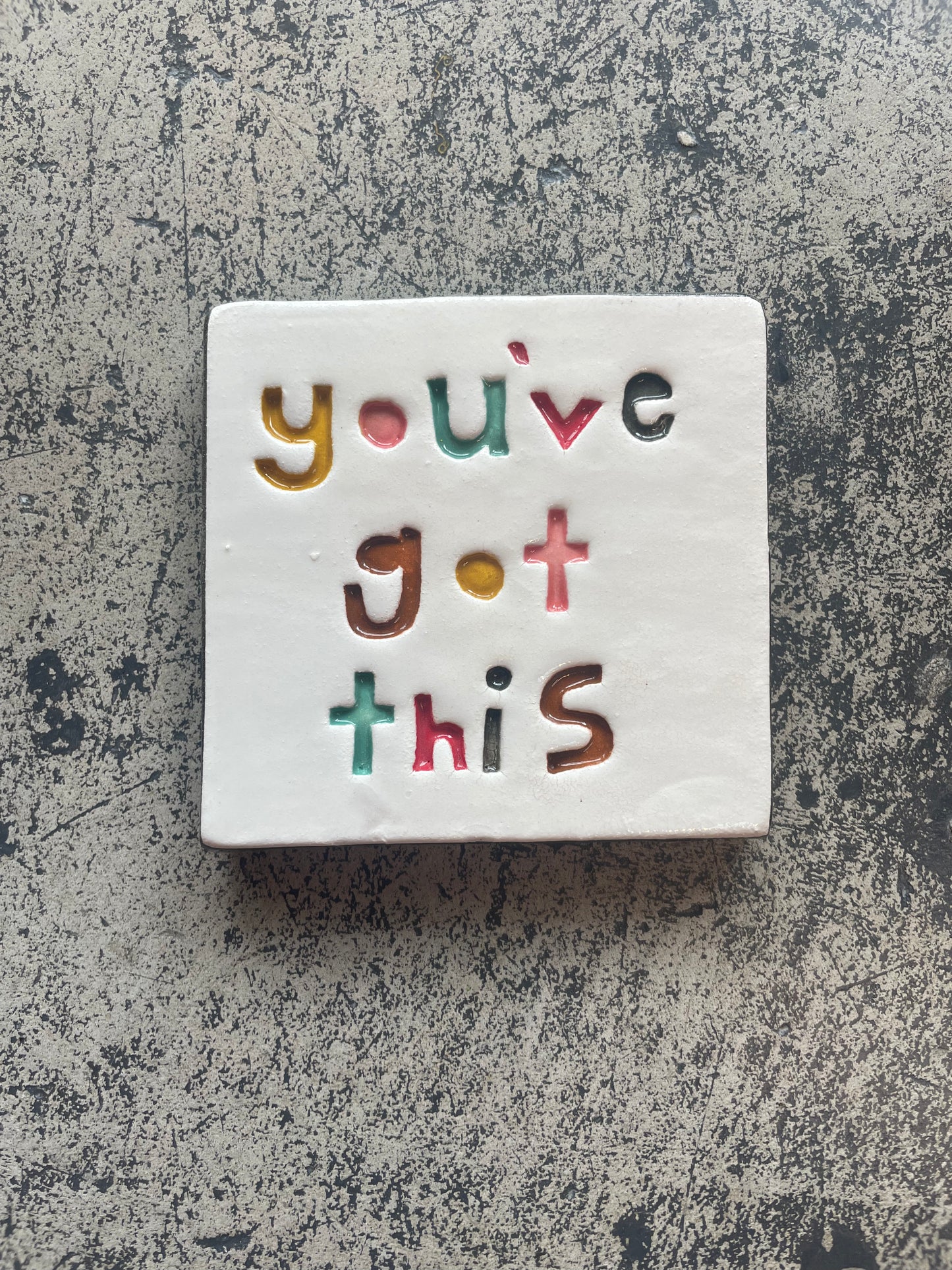 Ceramic 'You've got this' Tile. A little piece of ceramicy goodness. A beautiful handmade square tile. Crafted from NZ clay in our cosy little west coast studio.